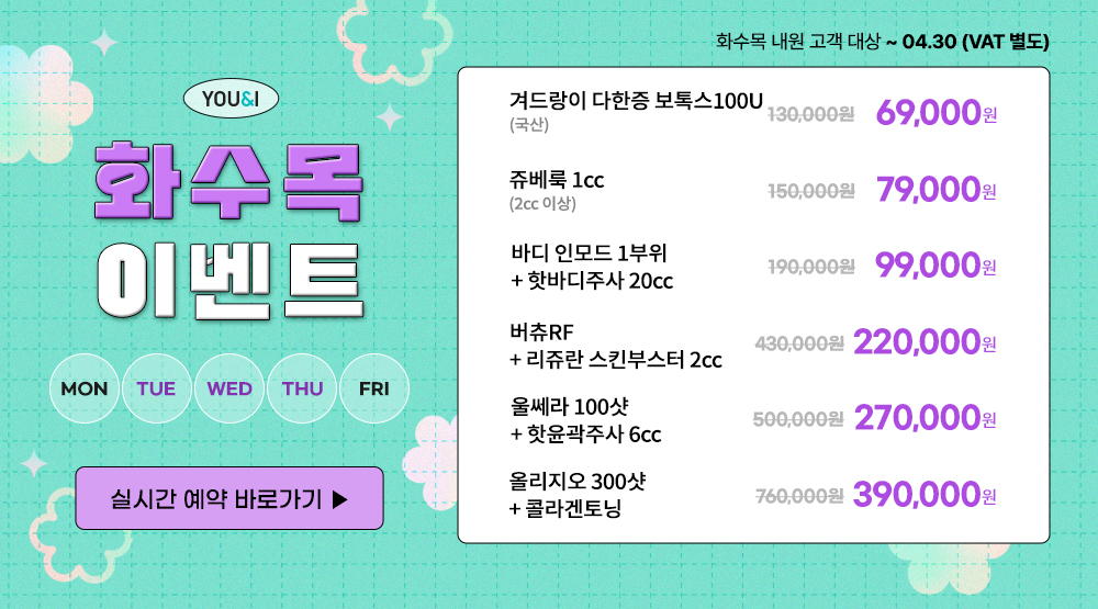 주름 보톡스(국산 프리미엄) 1부위 1회 체험가